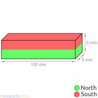 - Magnetisoinnin suunta: Paksuuden läpi(Each magnet’s north and south pole are on opposite 100mm x 10mm faces)