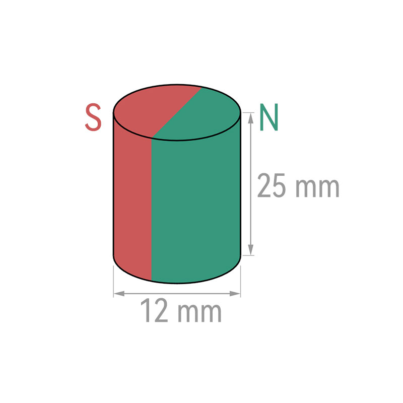 12Aimant à disque en néodyme magnétisé diamétralement mm x 25 mm N48 aimants diamétriques en néodyme puissants à vendre