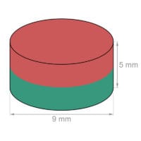 These disc magnets with a diameter of 9 mm, a height of 5 mm and N42 magnetisation have an impressive adhesive force of approx. 2,46 kg for their size. Use these disc magnets in the office or for arts and crafts and DIY projects of all kinds.