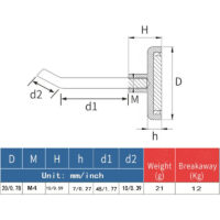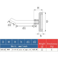 This pot magnet with screw socket and L-hook is perfect as a hook magnet for the wall. The square hook has a diameter of 16 mm or 20 mm. It is an ideal wall-hanging solution for office supplies, clothing or pictures with lightweight frames and other decorations. On the wall, the hook magnet with L-hook will hold a weight of up to approx. 8 kg. of 12 kg