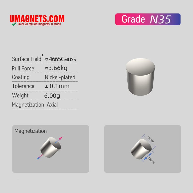 10mm x 10mm Neodymium Disc Magnets N35 Strong Rare Earth Cylinder Magnets Home Depot 10×10mm Magnet